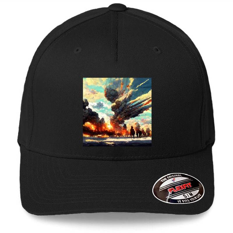 Epic explosion smoke plume during war design artwork printed on Flexfit Baseball Cap with latest DTF technology. Our new management team will place serving you. We offer best online shopping experience to our customers with 30 days return and exchange policy. Shop with confidence at T-funny.comProduct Details