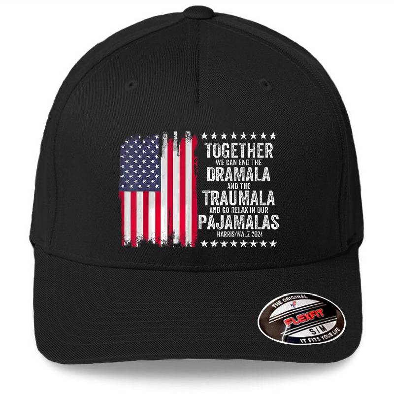Kamala Harris Walz 2024 We Can End Dramala Traumala design artwork printed on Flexfit Baseball Cap with latest DTF technology. Our new management team will place serving you. We offer best online shopping experience to our customers with 30 days return and exchange policy. Shop with confidence at T-funny.comProduct Details