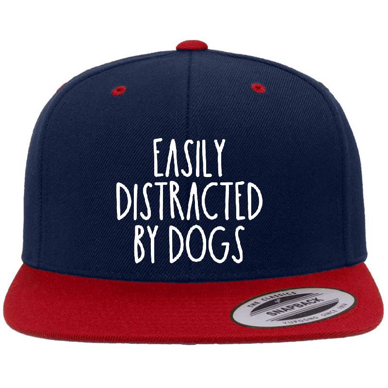 Easily Distracted By Dogs design artwork printed on Premium Flat Bill Snapback Cap with latest DTF technology. Our new management team will place serving you. We offer best online shopping experience to our customers with 30 days return and exchange policy. Shop with confidence at T-funny.comProduct Details