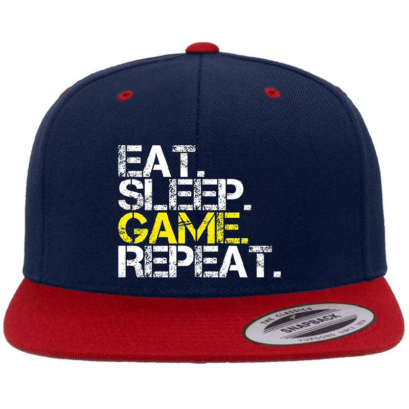 Eat Sleep Game Repeat Funny Gamer Timetable Humorous design artwork printed on Premium Flat Bill Snapback Cap with latest DTF technology. Our new management team will place serving you. We offer best online shopping experience to our customers with 30 days return and exchange policy. Shop with confidence at T-funny.comProduct Details