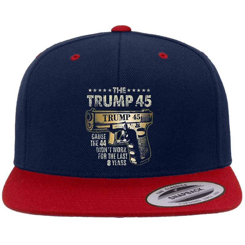Trump 45 Greater Than 44 Gun Rights design artwork printed on Premium Flat Bill Snapback Cap with latest DTF technology. Our new management team will place serving you. We offer best online shopping experience to our customers with 30 days return and exchange policy. Shop with confidence at T-funny.comProduct Details