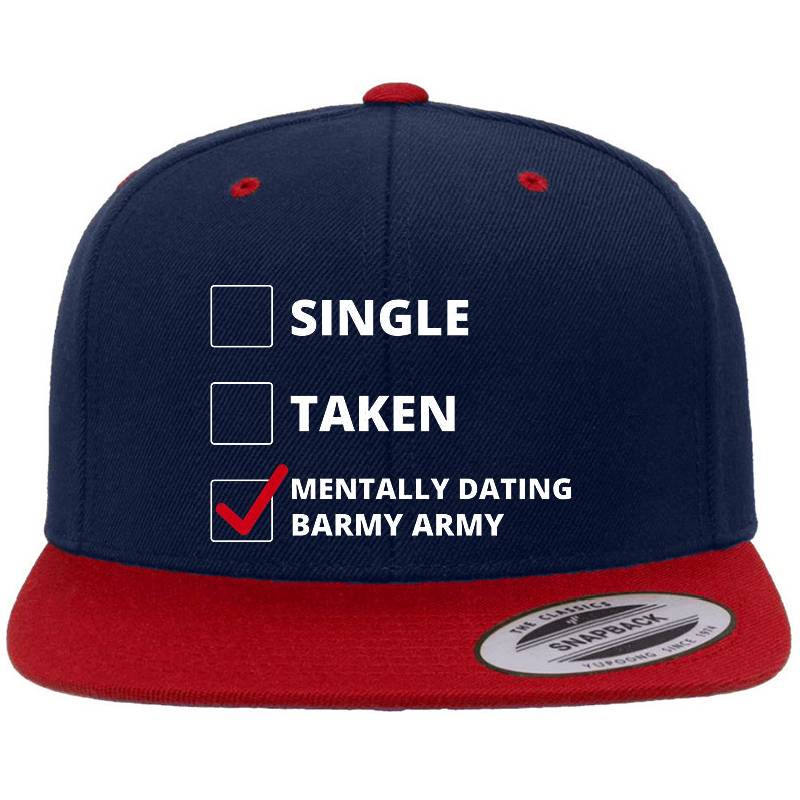 Mentally Dating Barmy Army design artwork printed on Premium Flat Bill Snapback Cap with latest DTF technology. Our new management team will place serving you. We offer best online shopping experience to our customers with 30 days return and exchange policy. Shop with confidence at T-funny.comProduct Details