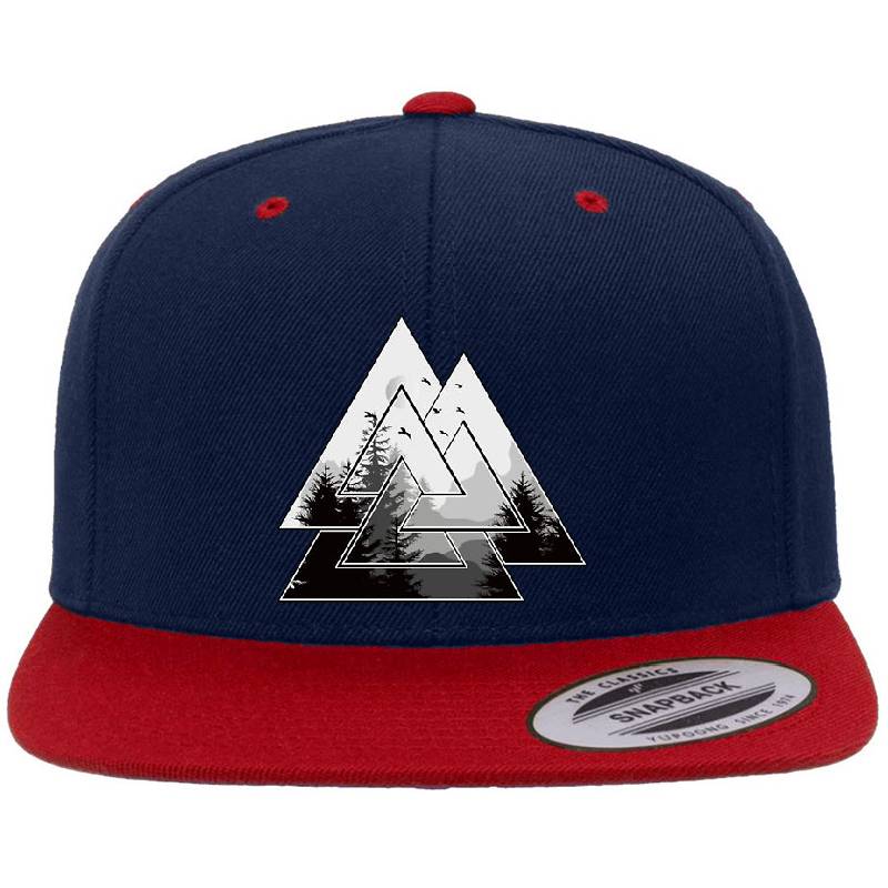 Valknut Symbol design artwork printed on Premium Flat Bill Snapback Cap with latest DTF technology. Our new management team will place serving you. We offer best online shopping experience to our customers with 30 days return and exchange policy. Shop with confidence at T-funny.comProduct Details