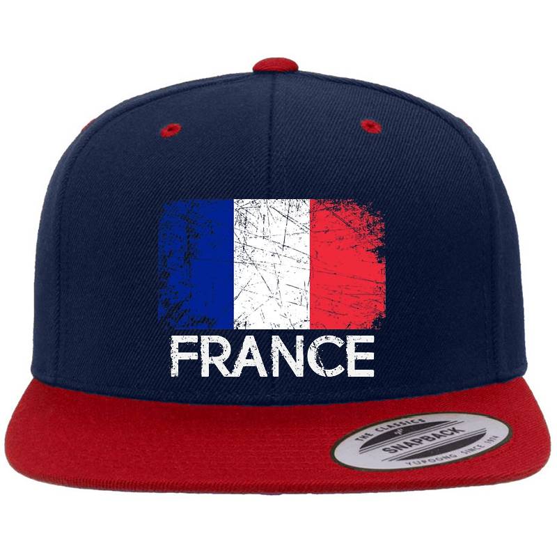 French Flag Design | Vintage Made In France Gift design artwork printed on Premium Flat Bill Snapback Cap with latest DTF technology. Our new management team will place serving you. We offer best online shopping experience to our customers with 30 days return and exchange policy. Shop with confidence at T-funny.comProduct Details
