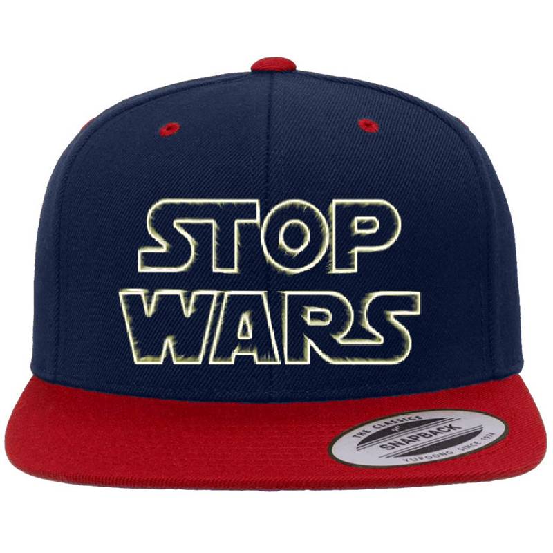 Stop Wars design artwork printed on Premium Flat Bill Snapback Cap with latest DTF technology. Our new management team will place serving you. We offer best online shopping experience to our customers with 30 days return and exchange policy. Shop with confidence at T-funny.com
