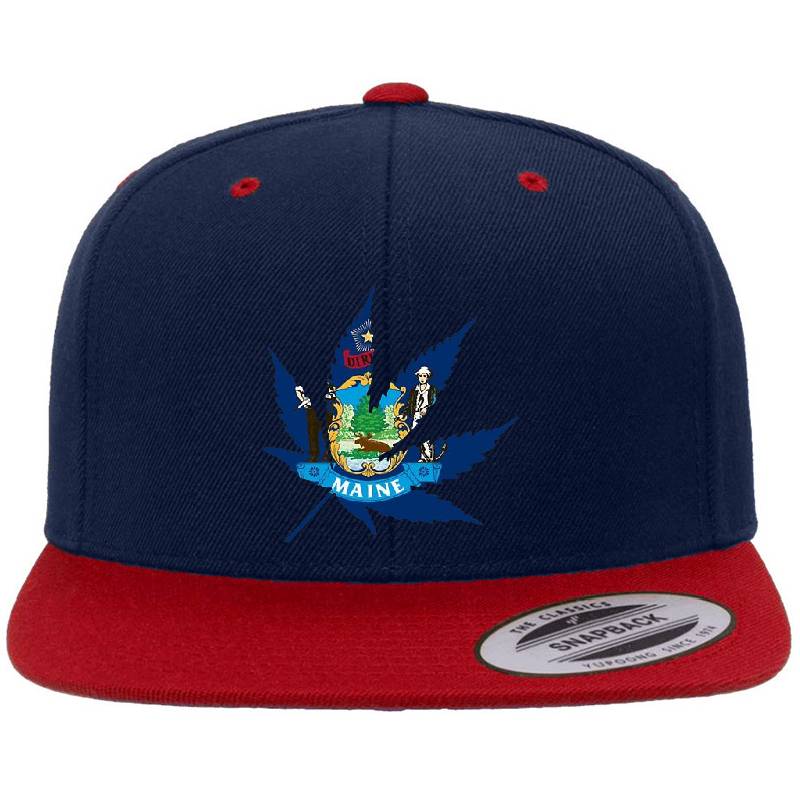 Maine Cannabis Leaf Flag design artwork printed on Premium Flat Bill Snapback Cap with latest DTF technology. Our new management team will place serving you. We offer best online shopping experience to our customers with 30 days return and exchange policy. Shop with confidence at T-funny.comProduct Details