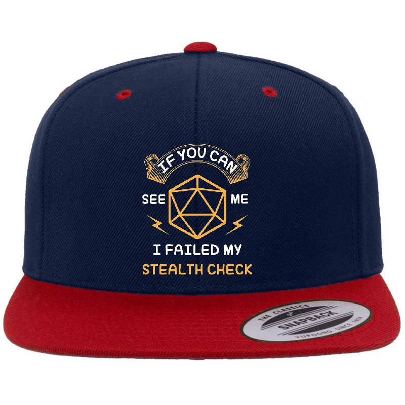 If you can see me, I failed my stealth check design artwork printed on Premium Flat Bill Snapback Cap with latest DTF technology. Our new management team will place serving you. We offer best online shopping experience to our customers with 30 days return and exchange policy. Shop with confidence at T-funny.comProduct Details