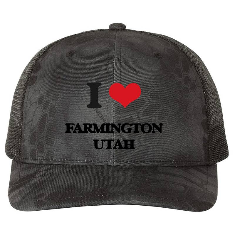I Love Farmington Utah design artwork printed on Richardson Premium Trucker Snapback Cap with latest DTF technology. Our new management team will place serving you. We offer best online shopping experience to our customers with 30 days return and exchange policy. Shop with confidence at T-funny.com