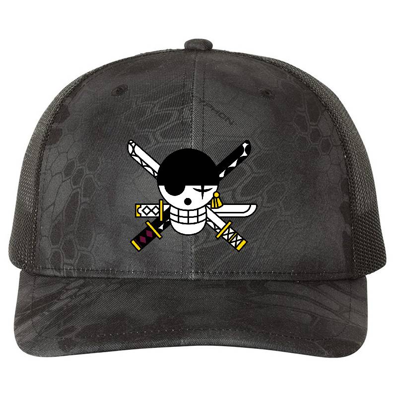 Roronoa Zoro Flag Symbol One Piece design artwork printed on Richardson Premium Trucker Snapback Cap with latest DTF technology. Our new management team will place serving you. We offer best online shopping experience to our customers with 30 days return and exchange policy. Shop with confidence at T-funny.comProduct Details
