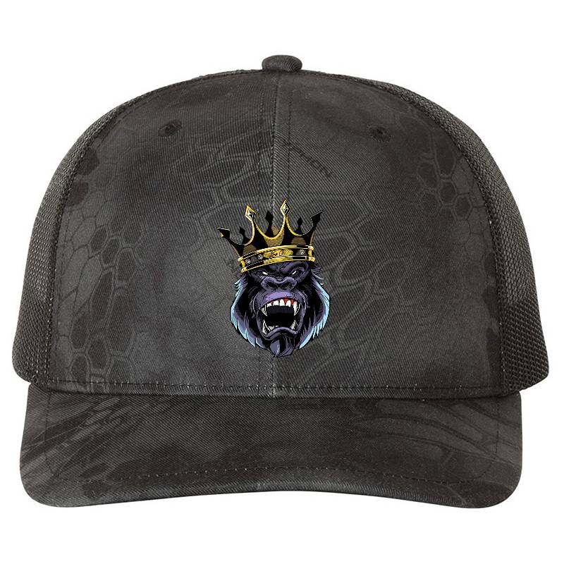 King G - Crowned Gorilla design artwork printed on Richardson Premium Trucker Snapback Cap with latest DTF technology. Our new management team will place serving you. We offer best online shopping experience to our customers with 30 days return and exchange policy. Shop with confidence at T-funny.comProduct Details