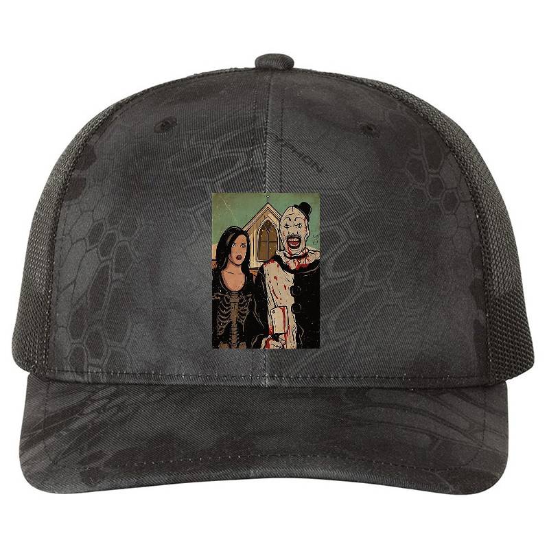 Birthday Gift Terrifier Horror Movie Art Retro Wave design artwork printed on Richardson Premium Trucker Snapback Cap with latest DTF technology. Our new management team will place serving you. We offer best online shopping experience to our customers with 30 days return and exchange policy. Shop with confidence at T-funny.comProduct Details