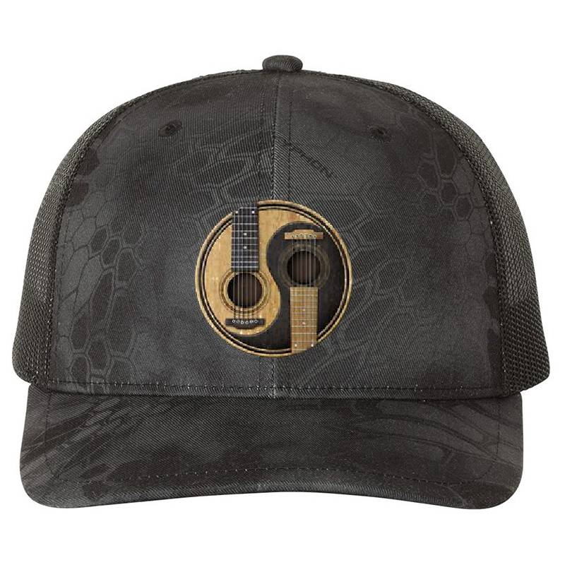 Old and Worn Acoustic Guitars Yin Yang design artwork printed on Richardson Premium Trucker Snapback Cap with latest DTF technology. Our new management team will place serving you. We offer best online shopping experience to our customers with 30 days return and exchange policy. Shop with confidence at T-funny.comProduct Details