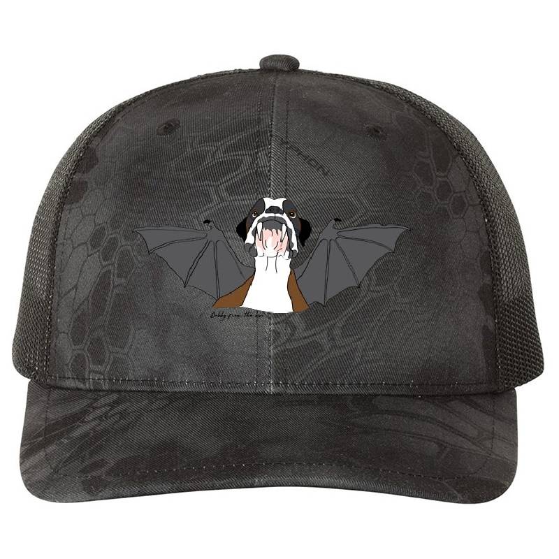 Spooky Bobby from the bin vampire bat halloween t-shirt design artwork printed on Richardson Premium Trucker Snapback Cap with latest DTF technology. Our new management team will place serving you. We offer best online shopping experience to our customers with 30 days return and exchange policy. Shop with confidence at T-funny.comProduct Details