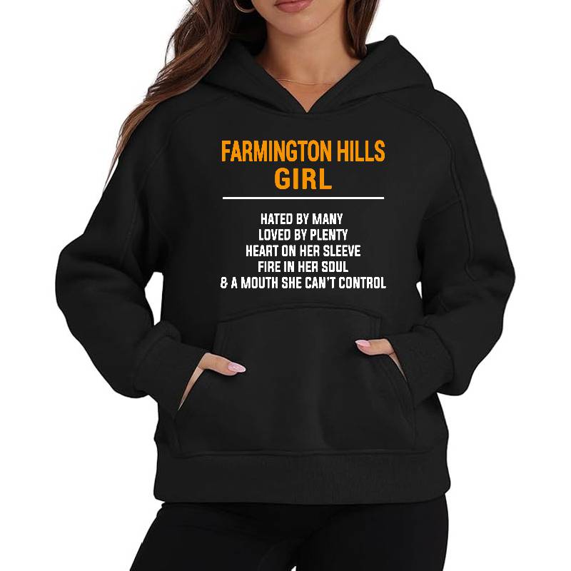 Farmington Hills Mi Girl - Heart On Sleeve. Customizable City design artwork printed on Unisex Hooded Sweatshirt with latest DTF technology. Our new management team will place serving you. We offer best online shopping experience to our customers with 30 days return and exchange policy. Shop with confidence at T-funny.com