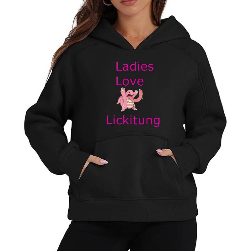Ladies Love Lickitung design artwork printed on Unisex Hooded Sweatshirt with latest DTF technology. Our new management team will place serving you. We offer best online shopping experience to our customers with 30 days return and exchange policy. Shop with confidence at T-funny.com