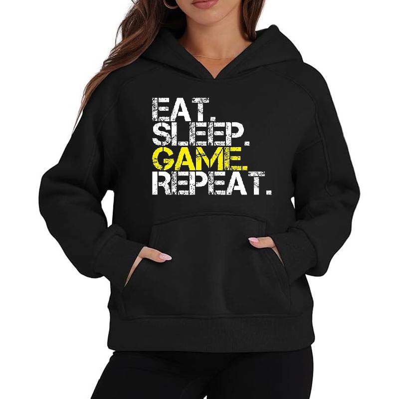 Eat Sleep Game Repeat Funny Gamer Timetable Humorous design artwork printed on Unisex Hooded Sweatshirt with latest DTF technology. Our new management team will place serving you. We offer best online shopping experience to our customers with 30 days return and exchange policy. Shop with confidence at T-funny.com