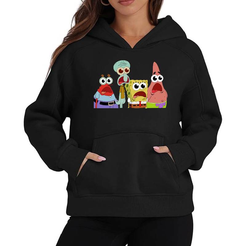 Big Eyed Spongebob Patrick Squidward And Mr. Krabs design artwork printed on Unisex Hooded Sweatshirt with latest DTF technology. Our new management team will place serving you. We offer best online shopping experience to our customers with 30 days return and exchange policy. Shop with confidence at T-funny.com