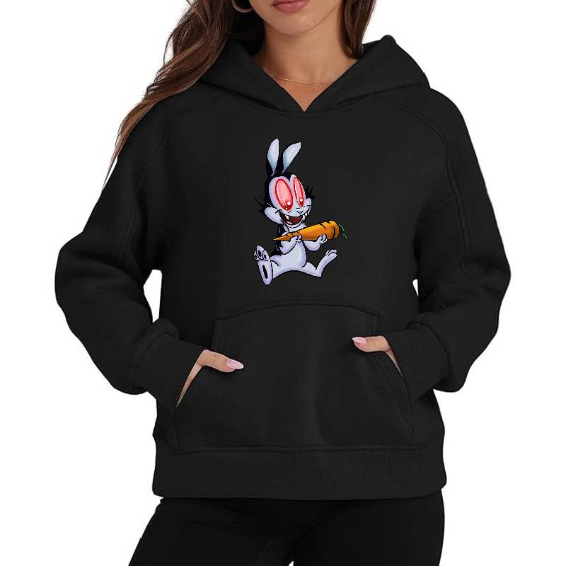 Rabbit Vampire Cartoon design artwork printed on Unisex Hooded Sweatshirt with latest DTF technology. Our new management team will place serving you. We offer best online shopping experience to our customers with 30 days return and exchange policy. Shop with confidence at T-funny.com