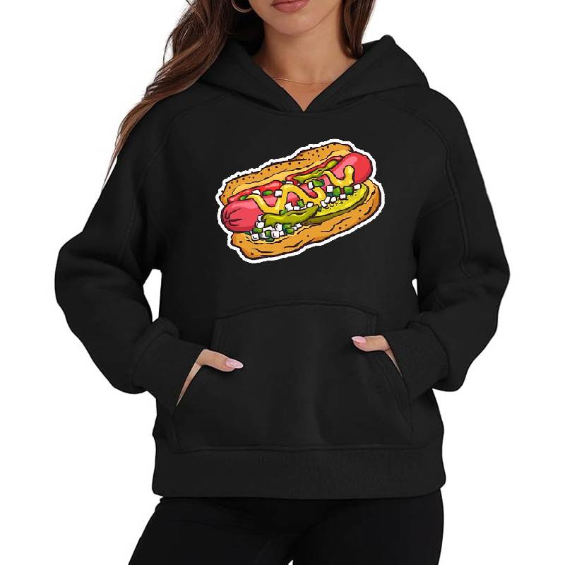 Chicago Hot Dog design artwork printed on Unisex Hooded Sweatshirt with latest DTF technology. Our new management team will place serving you. We offer best online shopping experience to our customers with 30 days return and exchange policy. Shop with confidence at T-funny.com