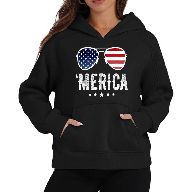 Stars Stripes Sunglasses Freedom Usa Merica Unisex Hooded Sweatshirts
