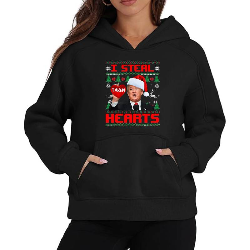 Santa Trump I Steal Hearts Valentines design artwork printed on Unisex Hooded Sweatshirt with latest DTF technology. Our new management team will place serving you. We offer best online shopping experience to our customers with 30 days return and exchange policy. Shop with confidence at T-funny.com