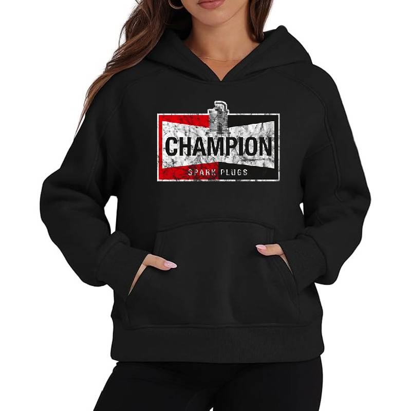 Champion Spark Plugs Distressed Logo design artwork printed on Unisex Hooded Sweatshirt with latest DTF technology. Our new management team will place serving you. We offer best online shopping experience to our customers with 30 days return and exchange policy. Shop with confidence at T-funny.com