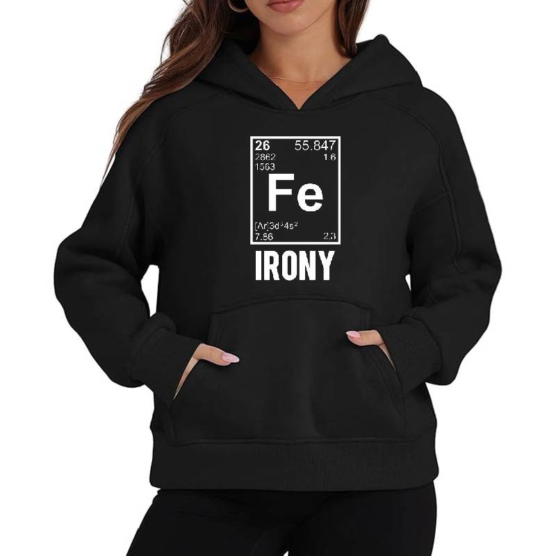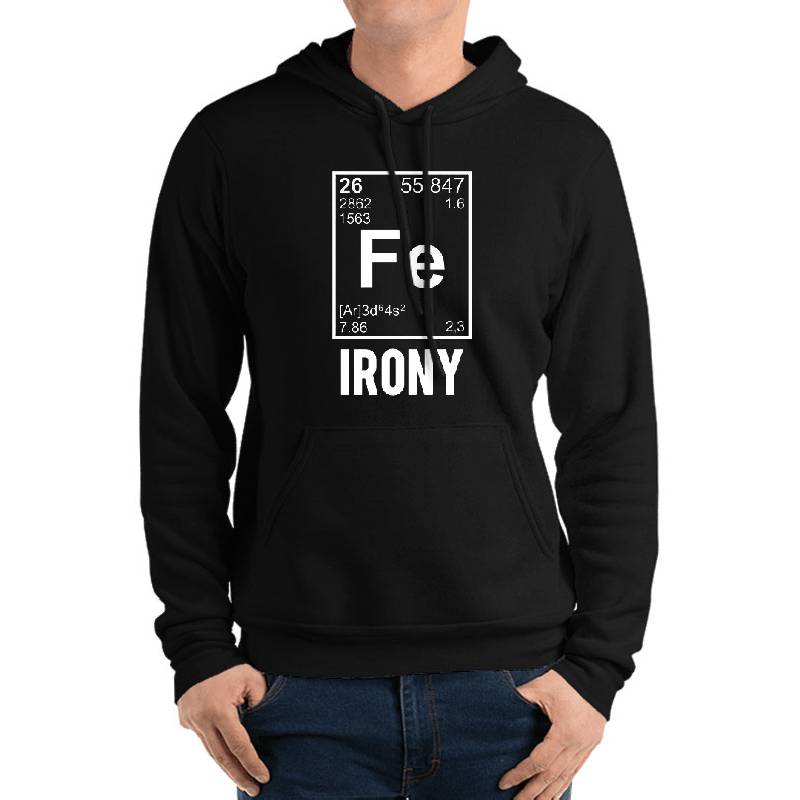Ironic Chemical Element FE Irony design artwork printed on Unisex Hooded Sweatshirt with latest DTF technology. Our new management team will place serving you. We offer best online shopping experience to our customers with 30 days return and exchange policy. Shop with confidence at T-funny.com