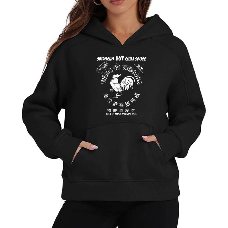 Sriracha spicy rooster hot chili sauce design artwork printed on Unisex Hooded Sweatshirt with latest DTF technology. Our new management team will place serving you. We offer best online shopping experience to our customers with 30 days return and exchange policy. Shop with confidence at T-funny.com