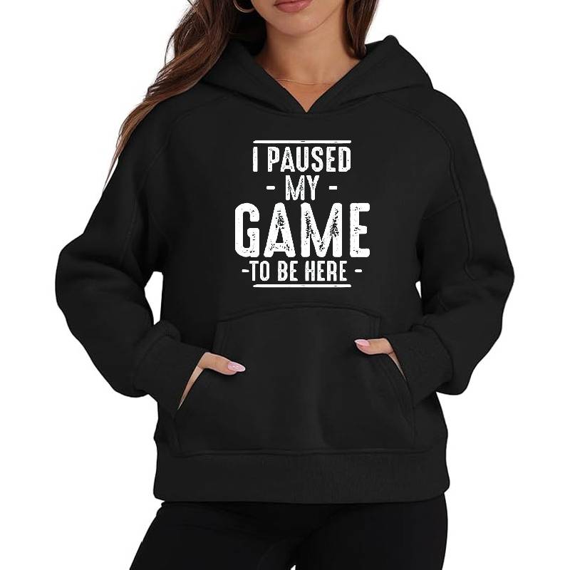 I Paused My Game to Be Here | Funny Video Gamer Humor Joke for Men Women T-Shirt design artwork printed on Unisex Hooded Sweatshirt with latest DTF technology. Our new management team will place serving you. We offer best online shopping experience to our customers with 30 days return and exchange policy. Shop with confidence at T-funny.com