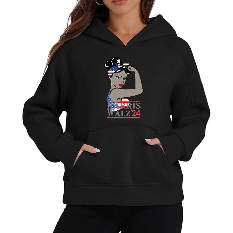 Harris Waltz 2024 power design artwork printed on Unisex Hooded Sweatshirt with latest DTF technology. Our new management team will place serving you. We offer best online shopping experience to our customers with 30 days return and exchange policy. Shop with confidence at T-funny.com