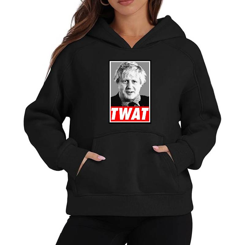 Boris Johnson Twat design artwork printed on Unisex Hooded Sweatshirt with latest DTF technology. Our new management team will place serving you. We offer best online shopping experience to our customers with 30 days return and exchange policy. Shop with confidence at T-funny.com