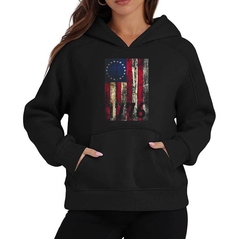 Betsy Ross Flag Vintage America First 1776 Betsy Ross Flag design artwork printed on Unisex Hooded Sweatshirt with latest DTF technology. Our new management team will place serving you. We offer best online shopping experience to our customers with 30 days return and exchange policy. Shop with confidence at T-funny.com