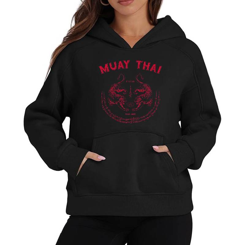 Muay Thai Tiger Sak Yant Tattoo Kickboxing Thailand design artwork printed on Unisex Hooded Sweatshirt with latest DTF technology. Our new management team will place serving you. We offer best online shopping experience to our customers with 30 days return and exchange policy. Shop with confidence at T-funny.com