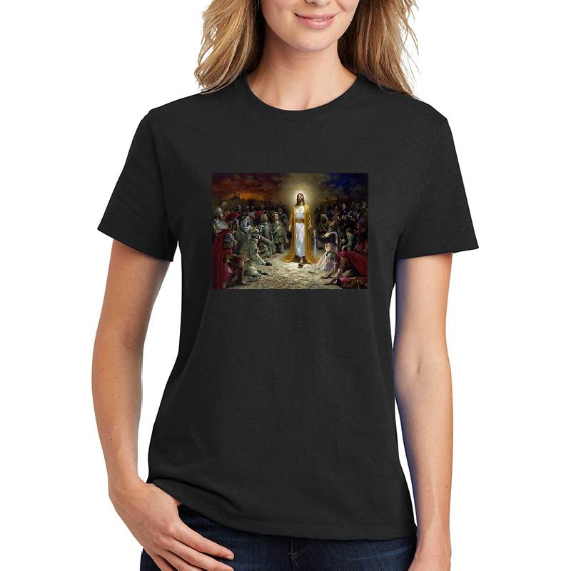 Army Military Soldiers Praising Jesus Christ design artwork printed on Unisex T-Shirt with latest DTF technology. Our new management team will place serving you. We offer best online shopping experience to our customers with 30 days return and exchange policy. Shop with confidence at T-funny.com