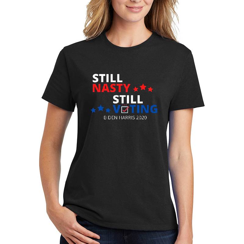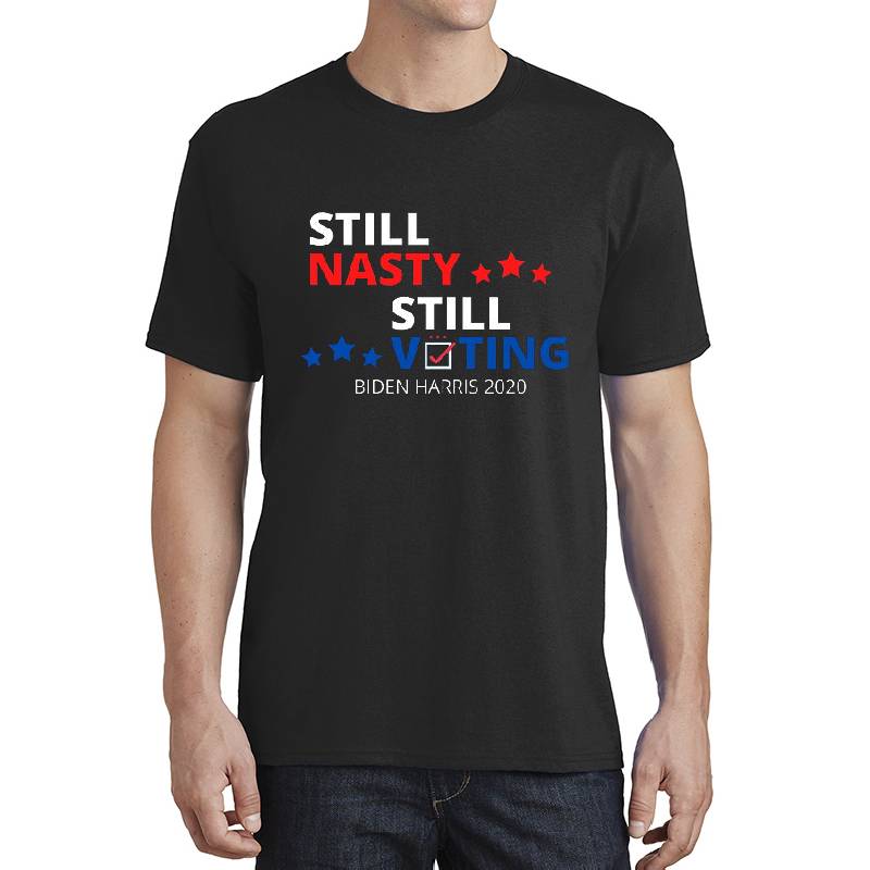 Still Nasty Still Voting Biden Harris 2020 Democratic Party Unisex T Shirt design artwork printed on Unisex T-Shirt with latest DTF technology. Our new management team will place serving you. We offer best online shopping experience to our customers with 30 days return and exchange policy. Shop with confidence at T-funny.com