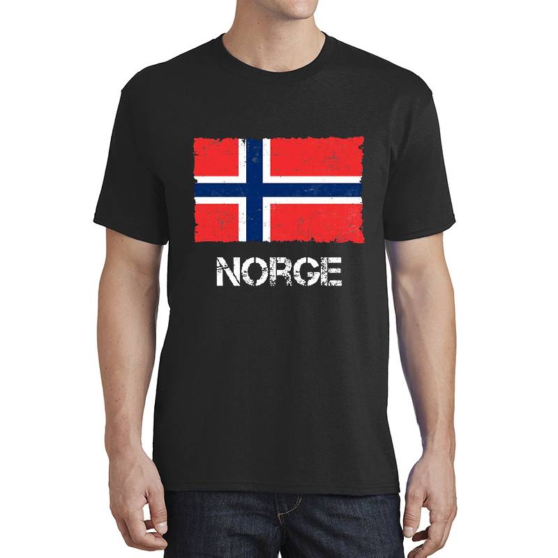 Norge Norway vintage flag used look design artwork printed on Unisex T-Shirt with latest DTF technology. Our new management team will place serving you. We offer best online shopping experience to our customers with 30 days return and exchange policy. Shop with confidence at T-funny.com