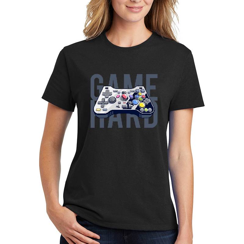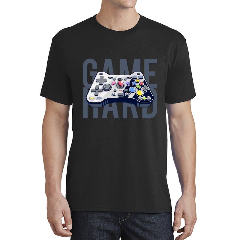 Game Hard design artwork printed on Unisex T-Shirt with latest DTF technology. Our new management team will place serving you. We offer best online shopping experience to our customers with 30 days return and exchange policy. Shop with confidence at T-funny.com