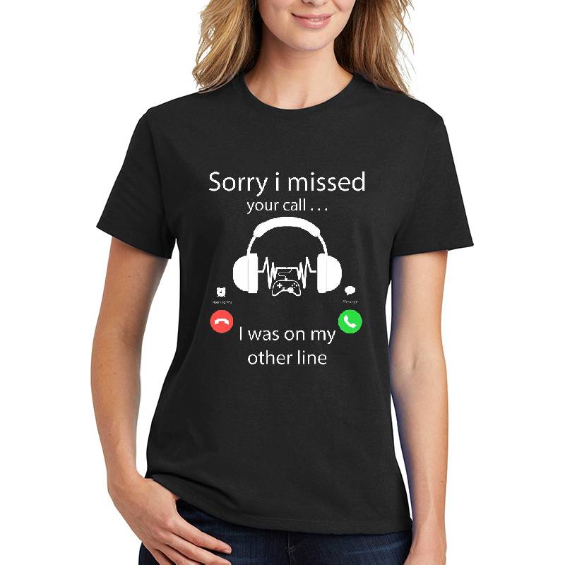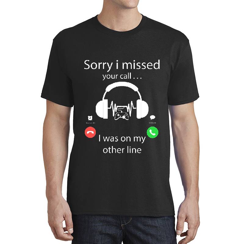 Funny Humor Gaming Lover Headset Sorry i missed your call i was on my other line design artwork printed on Unisex T-Shirt with latest DTF technology. Our new management team will place serving you. We offer best online shopping experience to our customers with 30 days return and exchange policy. Shop with confidence at T-funny.com