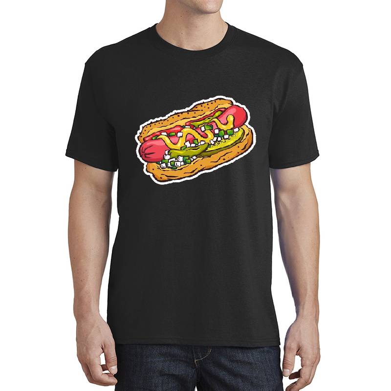 Chicago Hot Dog design artwork printed on Unisex T-Shirt with latest DTF technology. Our new management team will place serving you. We offer best online shopping experience to our customers with 30 days return and exchange policy. Shop with confidence at T-funny.com