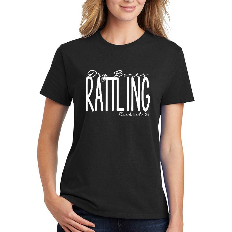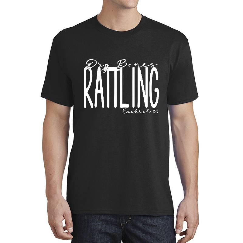 Inspirational Dry Bones Rattling design artwork printed on Unisex T-Shirt with latest DTF technology. Our new management team will place serving you. We offer best online shopping experience to our customers with 30 days return and exchange policy. Shop with confidence at T-funny.com
