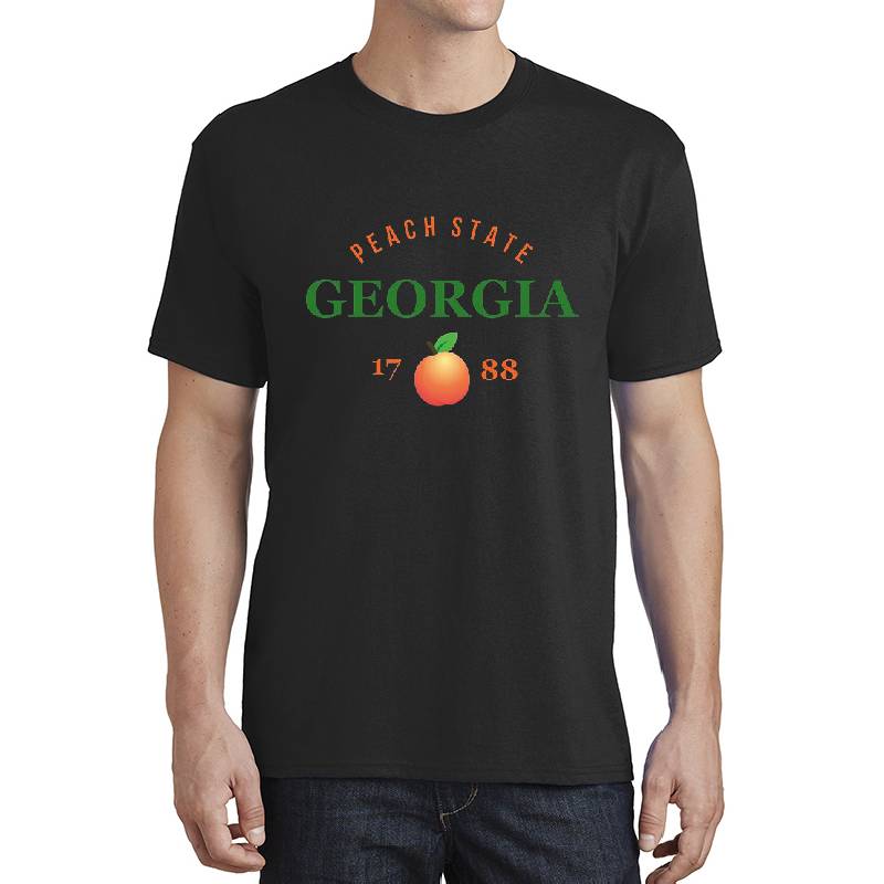 Georgia Pride Flag Native Home Peaches Peach State design artwork printed on Unisex T-Shirt with latest DTF technology. Our new management team will place serving you. We offer best online shopping experience to our customers with 30 days return and exchange policy. Shop with confidence at T-funny.com