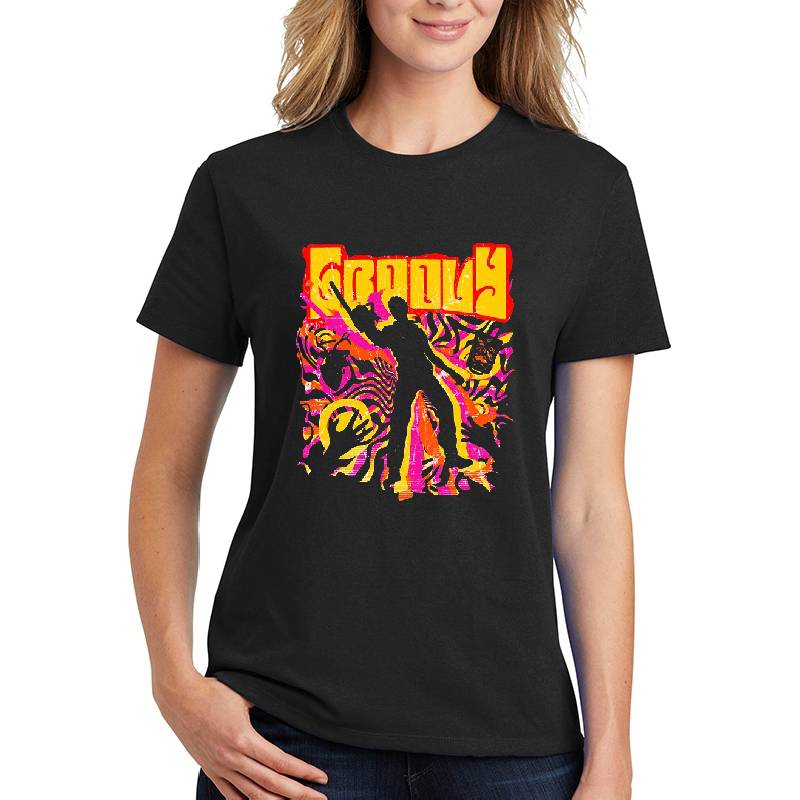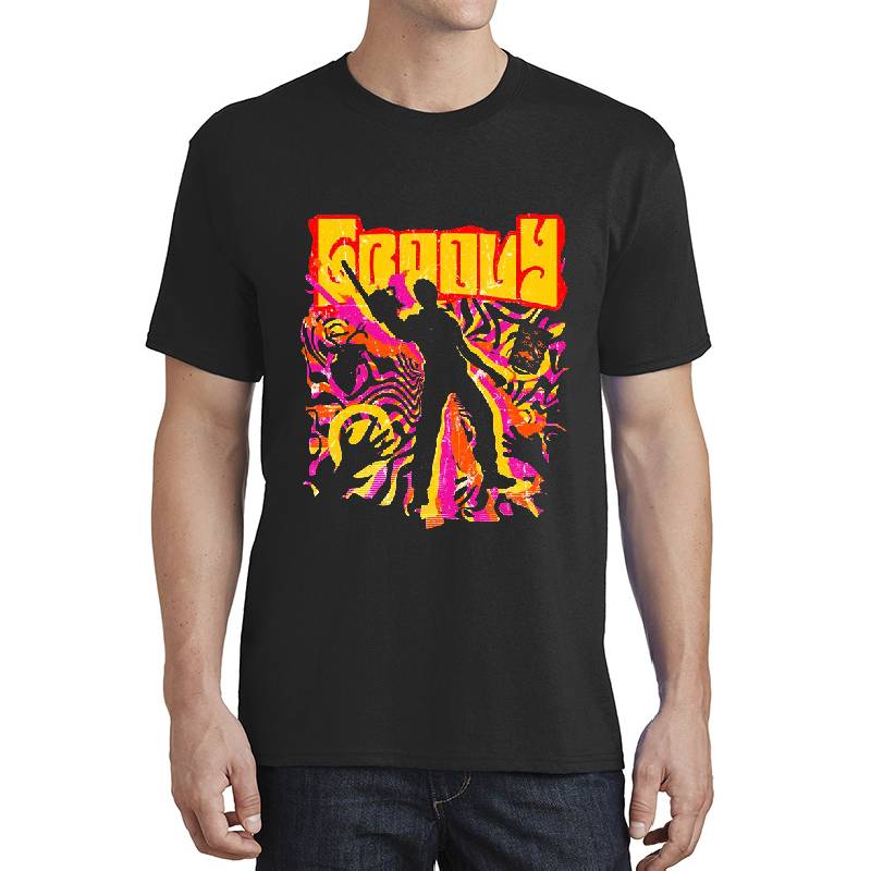 Stay Groovy - Evil Dead design artwork printed on Unisex T-Shirt with latest DTF technology. Our new management team will place serving you. We offer best online shopping experience to our customers with 30 days return and exchange policy. Shop with confidence at T-funny.com