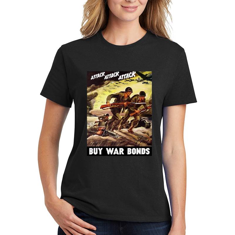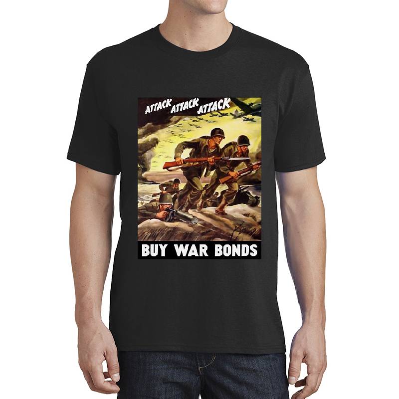 Buy War Bonds -- WW2 Propaganda design artwork printed on Unisex T-Shirt with latest DTF technology. Our new management team will place serving you. We offer best online shopping experience to our customers with 30 days return and exchange policy. Shop with confidence at T-funny.com