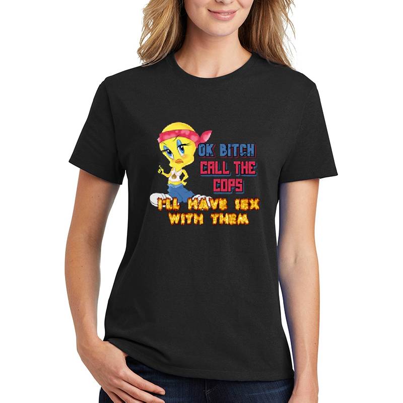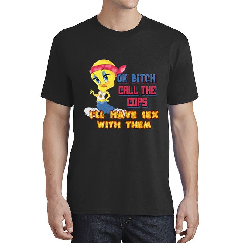 Ok Bitch Call The Cops I’ll Have Sex With Them design artwork printed on Unisex T-Shirt with latest DTF technology. Our new management team will place serving you. We offer best online shopping experience to our customers with 30 days return and exchange policy. Shop with confidence at T-funny.com