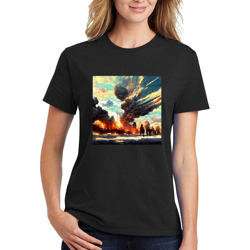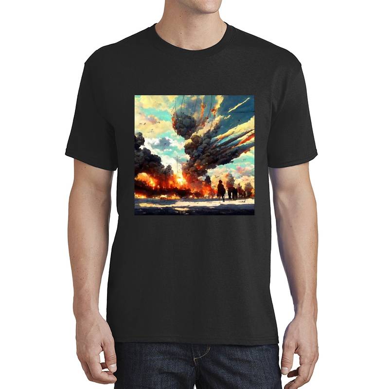Epic explosion smoke plume during war design artwork printed on Unisex T-Shirt with latest DTF technology. Our new management team will place serving you. We offer best online shopping experience to our customers with 30 days return and exchange policy. Shop with confidence at T-funny.com