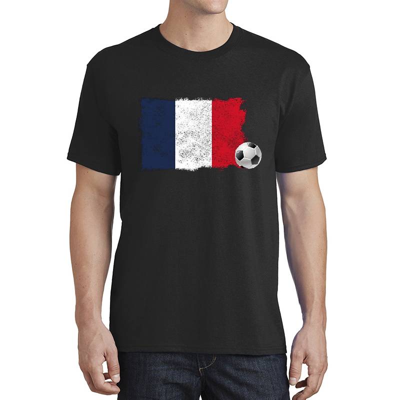 French flag football, France design artwork printed on Unisex T-Shirt with latest DTF technology. Our new management team will place serving you. We offer best online shopping experience to our customers with 30 days return and exchange policy. Shop with confidence at T-funny.com