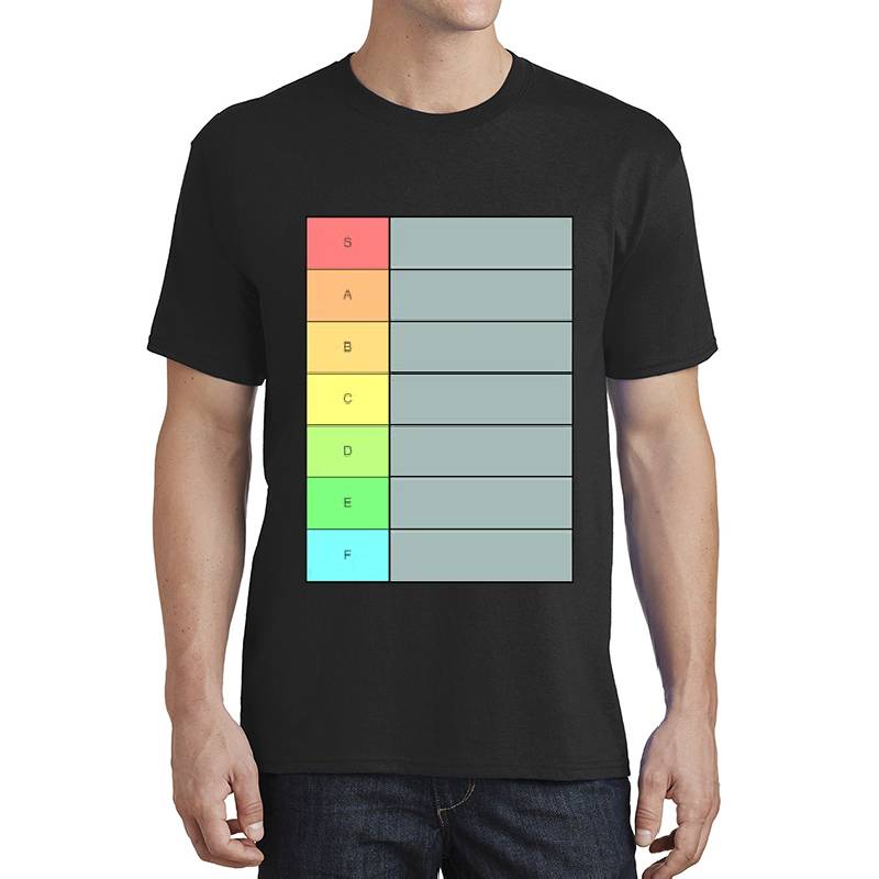 Tier List - Video Game design artwork printed on Unisex T-Shirt with latest DTF technology. Our new management team will place serving you. We offer best online shopping experience to our customers with 30 days return and exchange policy. Shop with confidence at T-funny.com