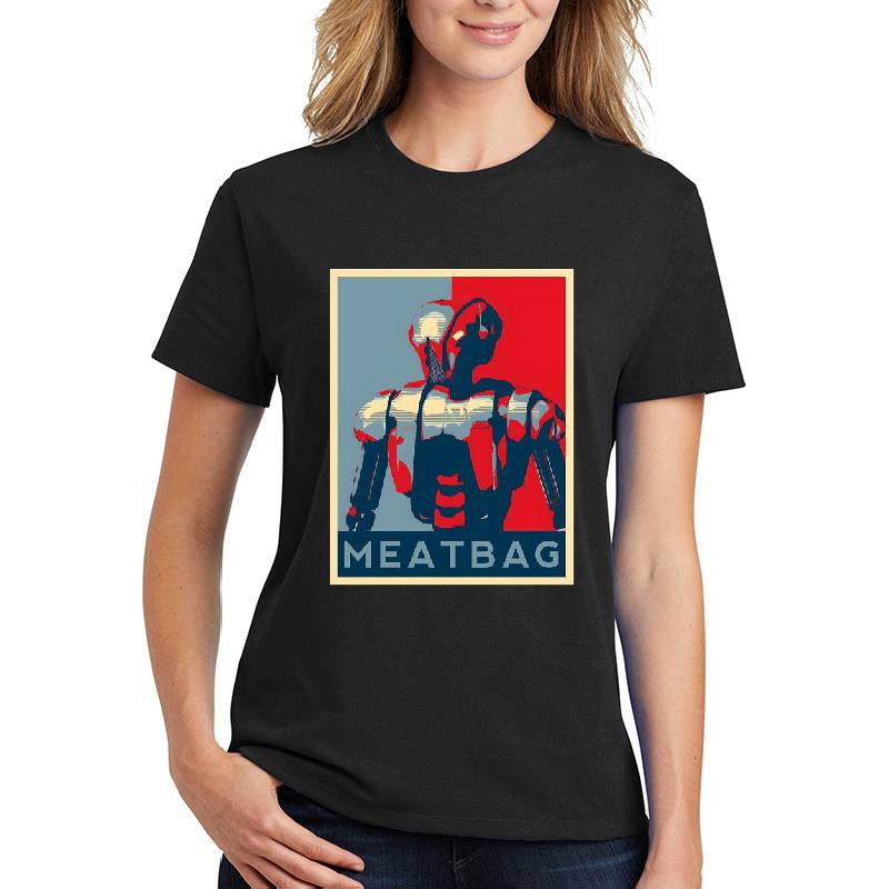 HK-47 Meatbag Poster design artwork printed on Unisex T-Shirt with latest DTF technology. Our new management team will place serving you. We offer best online shopping experience to our customers with 30 days return and exchange policy. Shop with confidence at T-funny.com
