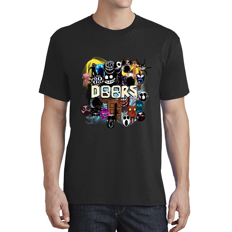 Doors All the Entities New Doors Game Update design artwork printed on Unisex T-Shirt with latest DTF technology. Our new management team will place serving you. We offer best online shopping experience to our customers with 30 days return and exchange policy. Shop with confidence at T-funny.com