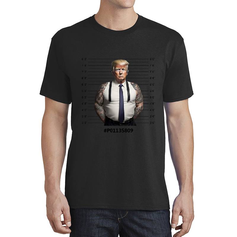 donald trump mugshot design artwork printed on Unisex T-Shirt with latest DTF technology. Our new management team will place serving you. We offer best online shopping experience to our customers with 30 days return and exchange policy. Shop with confidence at T-funny.com